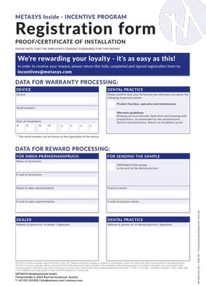 The installation of the following METASYS products in a dental unit entitles you to participate in the Inside-Program. A legal claim to the rewards only arises after receipt of the fully completed participation/installation form.